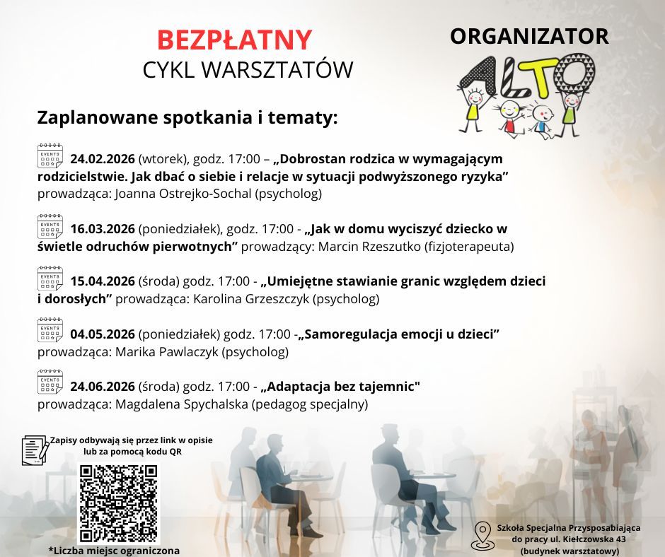Placówki Alto (żłobki, przedszkola, szkoły podstawowe oraz szkoła przysposabiająca) zapraszają rodziców i wszystkich zainteresowanych na cykl bezpłatnych spotkań i wykładów prowadzonych przez doświadczonych specjalistów.
