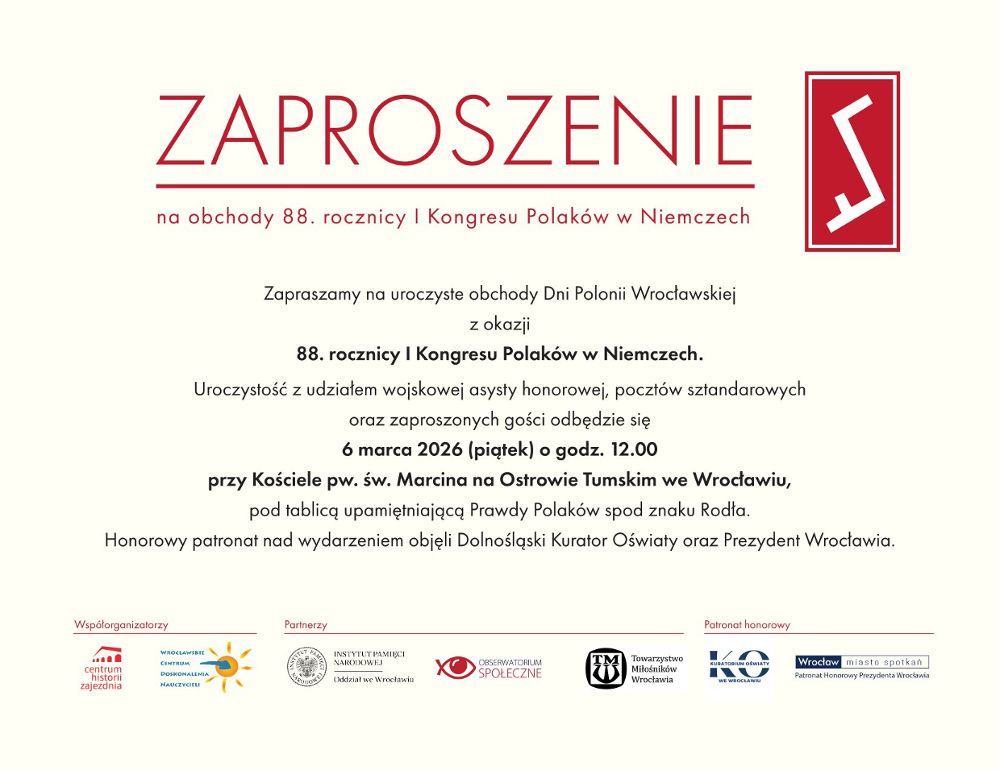 Główne wydarzenia zaplanowano na piątek 6 marca. Najpierw o godz. 12.00 przy kościele św. Marcina na Ostrowie Tumskim odbędzie się okolicznościowa uroczystość z udziałem Wojskowej Asysty Honorowej wystawionej przez Garnizon Wrocław, podczas której przy tablicy upamiętniającej Pięć Prawd Polaków spod znaku Rodła zostaną złożone kwiaty.