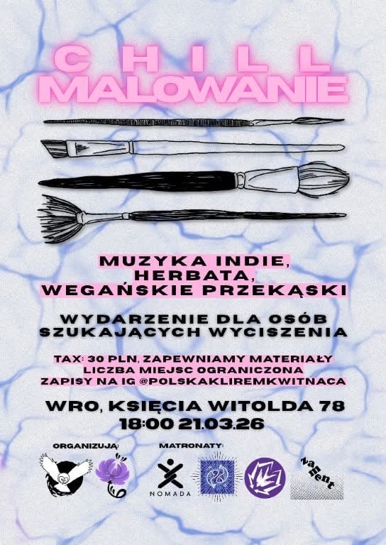 W tle będzie spokojna muzyka indie, a na stoliku znajdziecie różne herbaty i wegańskie przekąski. Przed Wami przestrzeń do tworzenia – nie musicie mieć doświadczenia, wystarczą chęci i spojrzenie w siebie.