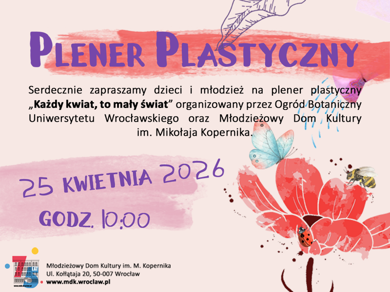 Młodzieżowy Dom Kultury im. Mikołaja Kopernika zaprasza na wiosenny plener plastyczny w Ogrodzie Botanicznym Uniwersytetu Wrocławskiego.