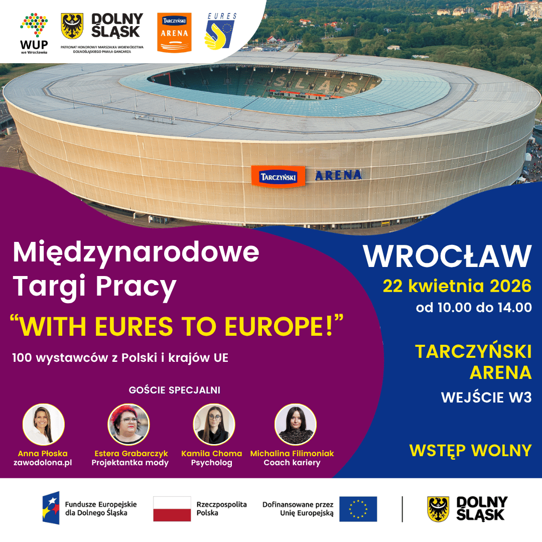 Międzynarodowe Targi Pracy „With EURES to Europe!” to największe wydarzenie na Dolnym Śląsku otwierające drzwi do europejskiej kariery. Inicjatywa integruje pracodawców, instytucje oraz osoby poszukujące pracy i jest organizowana przez Wojewódzki Urząd Pracy we Wrocławiu w ramach sieci EURES.
