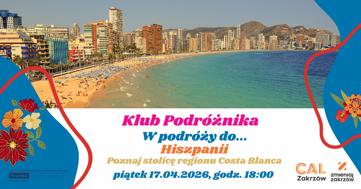 ¡Hola Zakrzów! Czas na hiszpańską przygodę z Klubem Podróżnika! Marzycie o podróży do miejsca, gdzie słońce świeci przez 300 dni w roku? Już w najbliższy piątek 17.04 w CAL-u Zakrzów wybierzemy się w podróż do Alicante – tętniącej życiem stolicy regionu Costa Blanca!