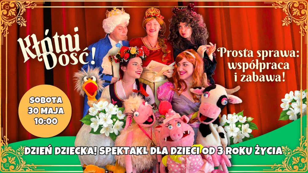 Zapraszamy na wyjątkowy spektakl dla dzieci od 3. roku życia, idealny na Dzień Dziecka. „Kłótni Dość – współpraca i zabawa!” to interaktywna przygoda, w której najmłodsi nie tylko oglądają, ale także współtworzą historię.