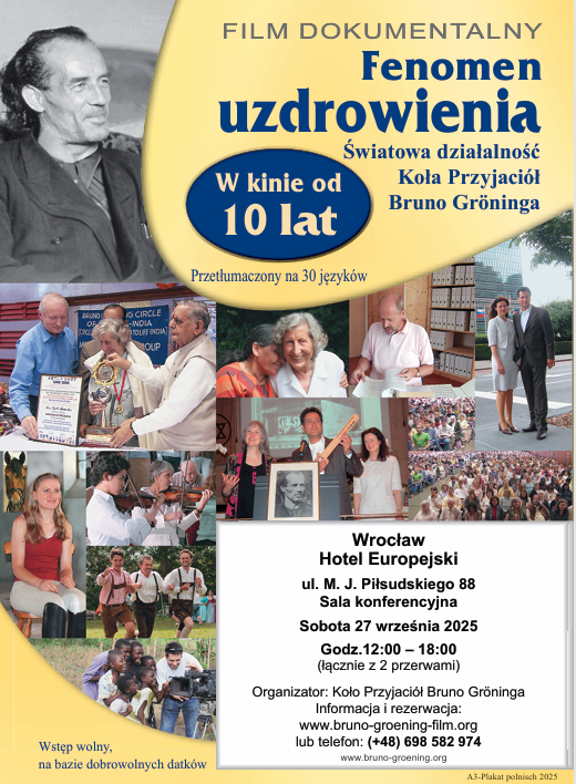 Film, który może zmienić Twoje życie! Przedstawia zadziwiające historie ludzi z 35 krajów, którzy dziś stosują prostą naukę Bruno Gröninga oraz opowiada o tym, co zdarzyło się po jego odejściu.