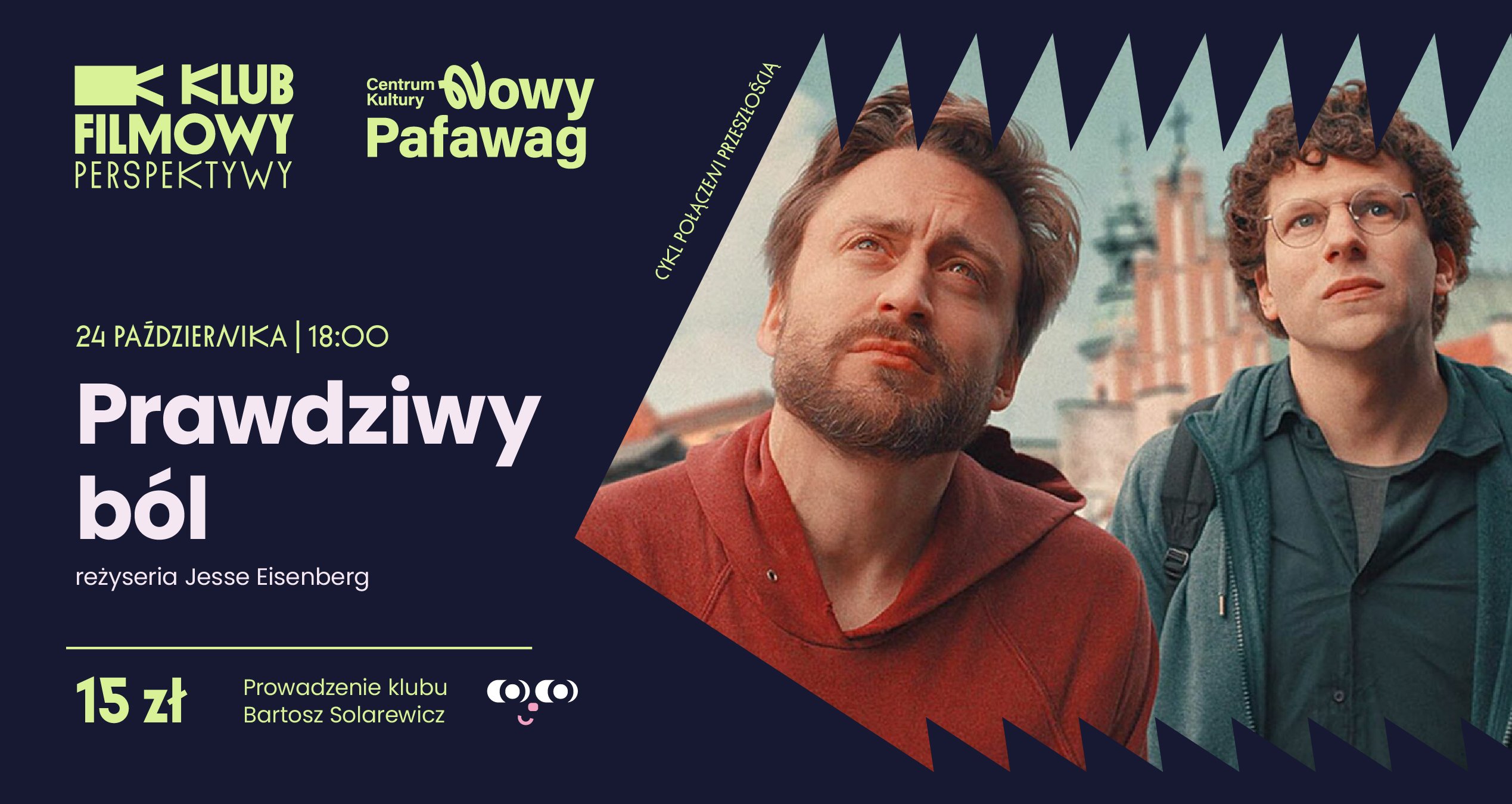 Zapraszamy na niepowtarzalny seans w ramach Klubu Filmowego Perspektywy, podczas którego obejrzymy poruszający i wielowarstwowy film „Prawdziwy ból” (A Real Pain), dzieło napisane, wyreżyserowane i zagrane przez Jessego Eisenberga, w którym to wraz z Kiernanem Culkinem wcielają się w role kuzynów, przemierzających Polskę w hołdzie ukochanej babci – a przy okazji stawiających czoła trudnej przeszłości, przeczuwanej i obecnej jednocześnie.