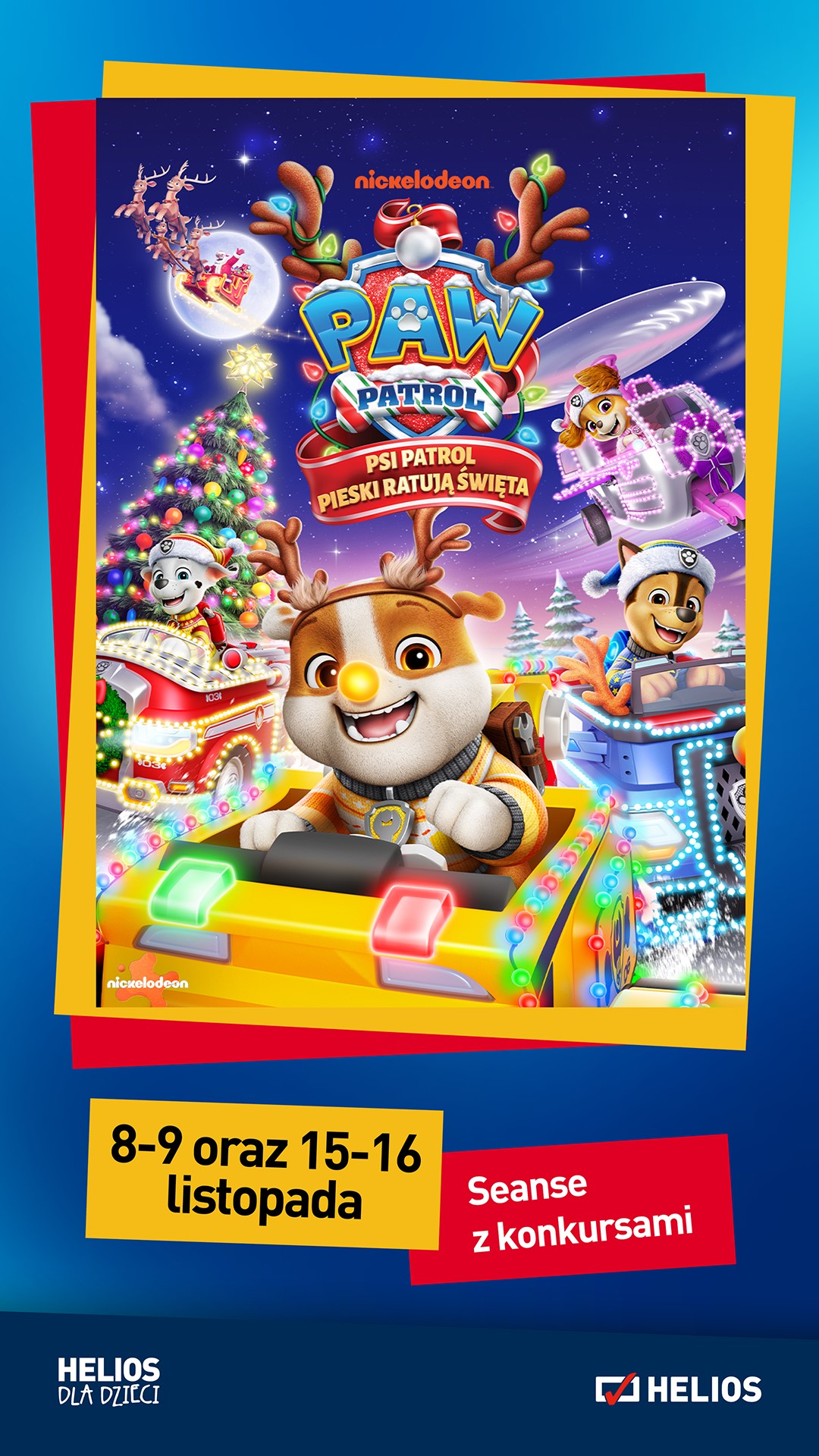 Kina Helios Wrocław Magnolia Park i Helios Wrocław Aleja Bielany zapraszają w dniach 8-9 oraz 15-16 listopada 2025 o godzinie 10:10 i 12:00 na seanse z konkursami „Psi patrol. Pieski ratują święta”. Rubble nie może się doczekać tegorocznych Świąt Bożego Narodzenia, ponieważ cieszy się na wyjątkowy prezent od Świętego Mikołaja – wiertarkę laserową. Jednak gdy wszyscy mieszkańcy Miasta Przygód, w tym burmistrz Humdinger, dowiadują się, że Święty Mikołaj przeziębił się i Boże Narodzenie zostało odwołane, burmistrz postanawia udać się na Biegun Północny i zabrać wszystkie prezenty dla siebie.