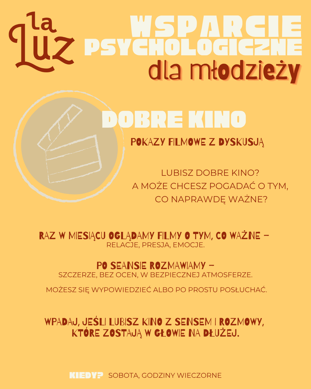 "Dobre Kino" dla młodzieży i dyskusja z psychologiem w Klubokawiarni LaLuz