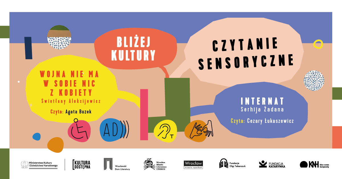 Na wydarzenie zaprasza Wrocławski Dom Literatury i partnerzy projektu Bliżej kultury: Fundacja Olgi Tokarczuk i Fundacja Katarynka. — „Bliżej kultury” to projekt obejmujący atrakcyjną, różnorodną i włączającą ofertę kulturalną. Kluczowym założeniem projektu jest rozwijanie aktywności kulturalnej i integracja wszystkich mieszkanek i mieszkańców Wrocławia oraz zapewnienie dostępności wydarzeń możliwie jak najszerszemu gronu zainteresowanych osób. Stąd też zastosowanie takich rozwiązań jak: audiodeskrypcja, napisy, tłumaczenie migowe, pętle indukcyjne i transmisje online.