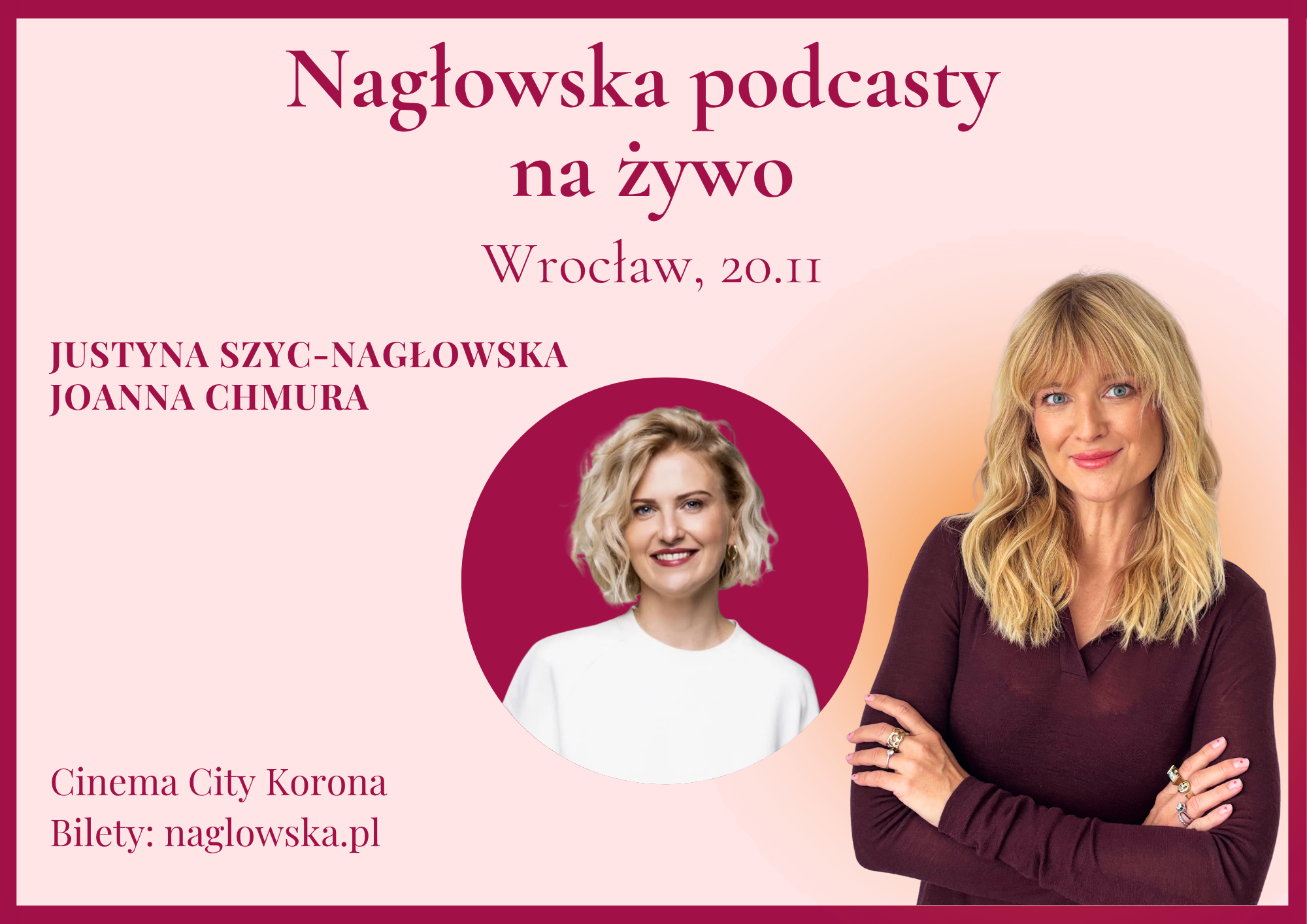 „Nagłowska Podcasty na żywo” – Spotkanie z Justyną Szyc-Nagłowską i Joanną Chmurą