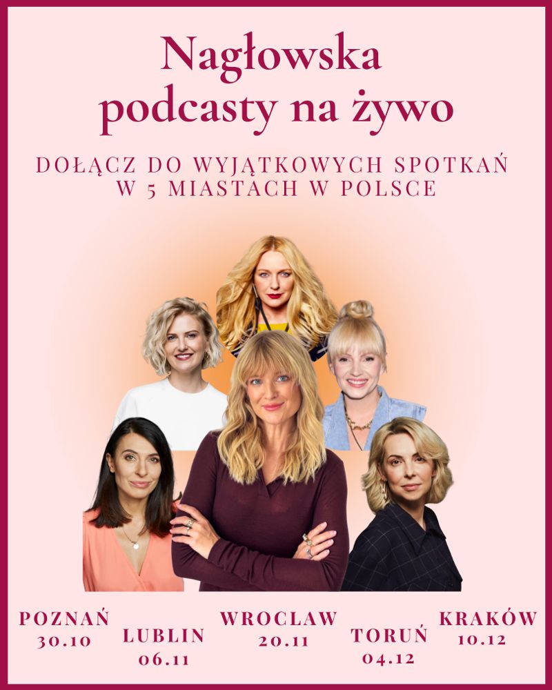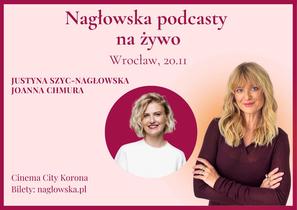 Dziennikarka, autorka i producentka popularnych podcastów, Justyna Szyc-Nagłowska, wyrusza w trasę po Polsce z cyklem wyjątkowych spotkań dla kobiet „Nagłowska Podcasty na żywo”. Do Wrocławia przyjedzie 20 listopada, by w kameralnej, kinowej atmosferze rozmawiać o emocjach i byciu w relacji z samą sobą. Jej gościem będzie Joanna Chmura, psycholożka, która specjalizuje się w odwadze. Między innymi w odwadze przeżywania, doświadczania oraz nietłumienia emocji.