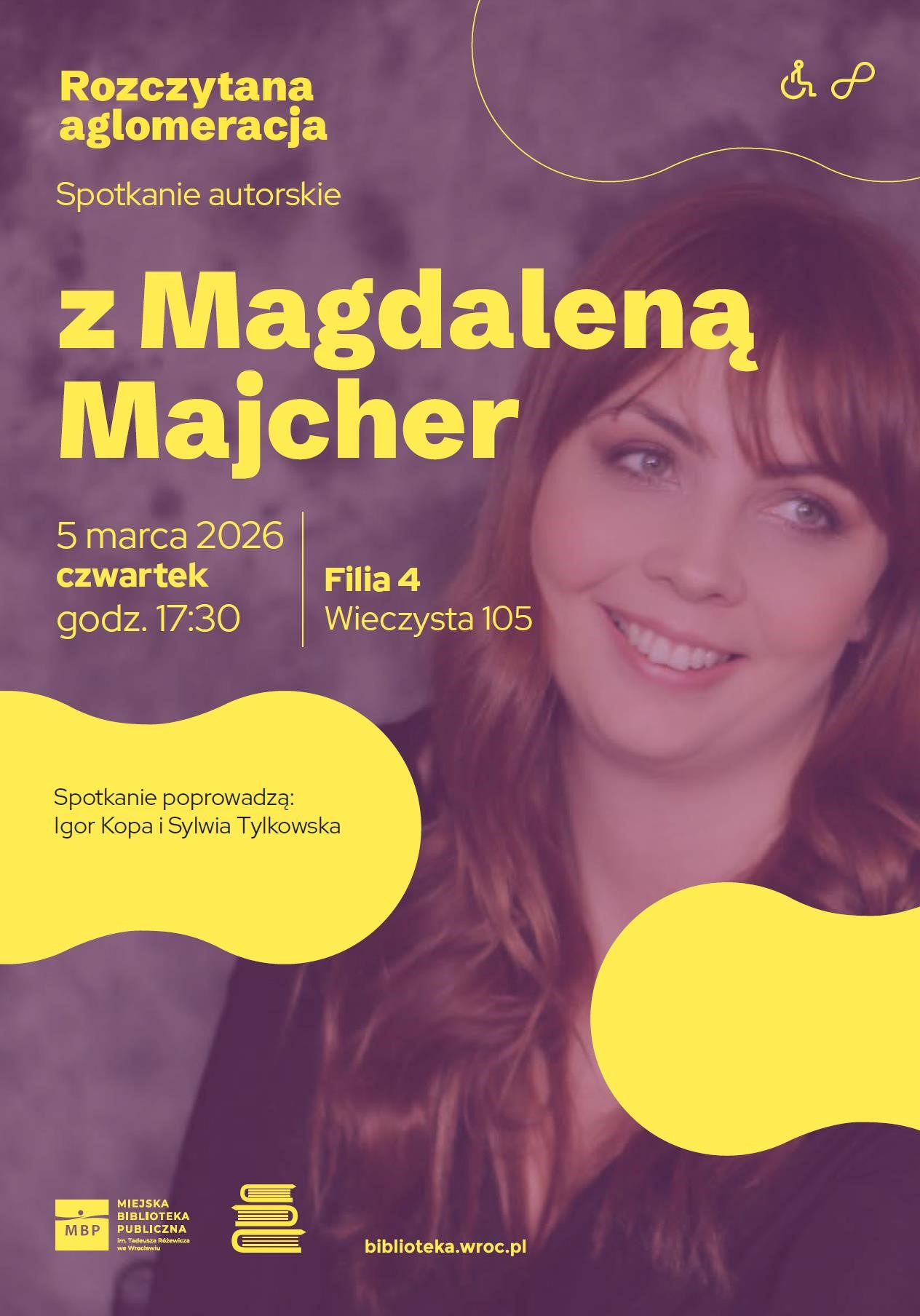 Zapraszamy na spotkanie z Magdaleną Majcher, autorką ponad trzydziestu książek. W swoich powieściach, osadzonych na rozbudowanym tle społecznym, łączy historie kryminalne z wątkami obyczajowymi.