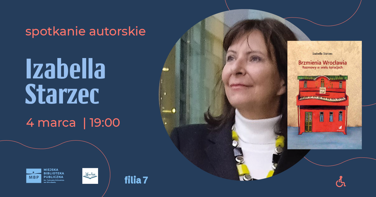 Serdecznie zapraszamy na spotkanie autorskie w ramach cyklu Literackie Środy CAL Maślice. Naszym gościem będzie Izabella Starzec, autorka książki „Brzmienia Wrocławia. Rozmowy w wielu tonacjach” (wyd. „Akwedukt”).