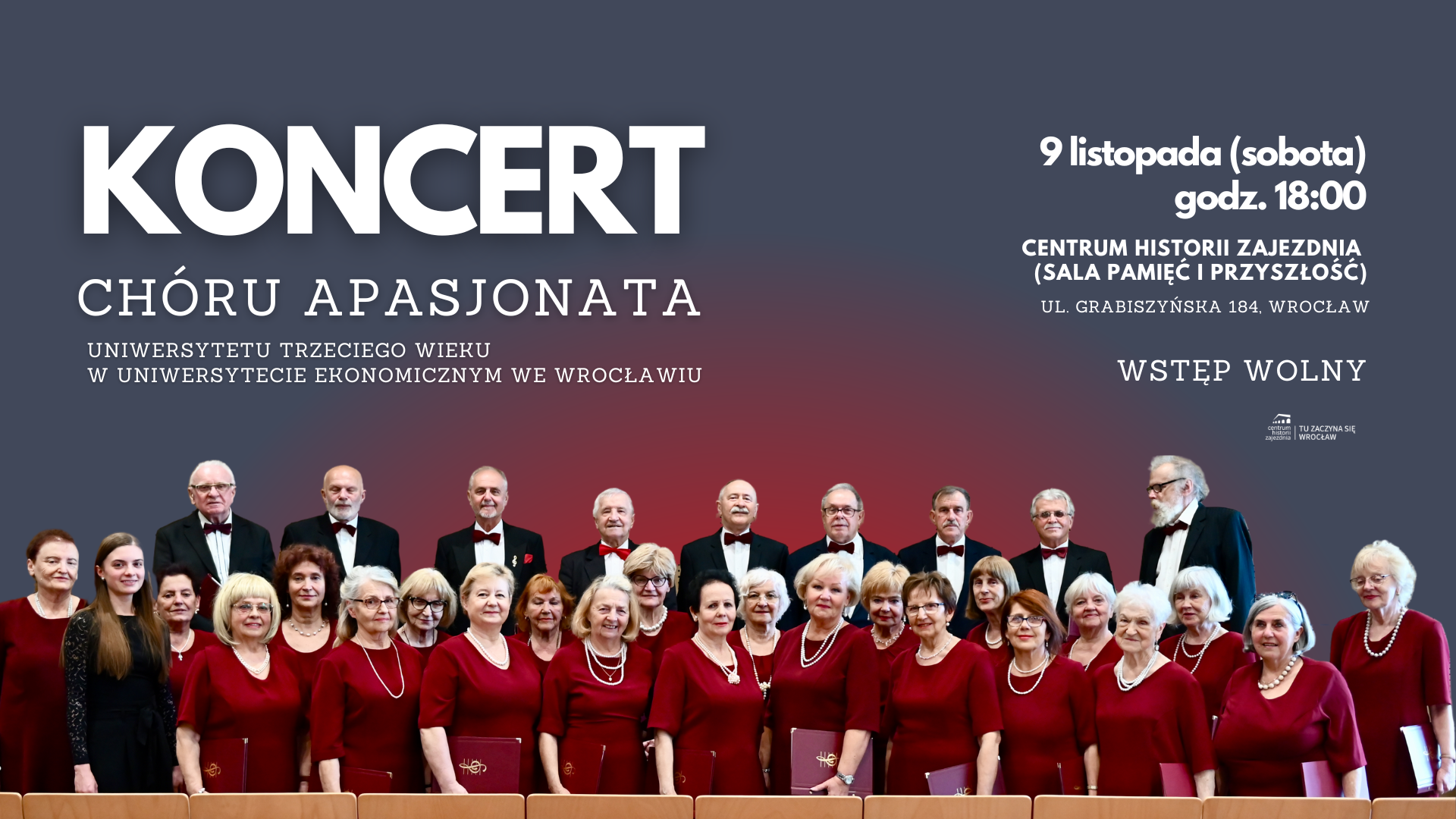 Chór Apasjonata, składający się z pasjonatów muzyki z Uniwersytetu Trzeciego Wieku w Uniwersytecie Ekonomicznym we Wrocławiu, zaprezentuje wyjątkowy repertuar. Nie przegapcie tej okazji, aby spędzić wieczór pełen muzycznych emocji w duchu wspólnego świętowania Niepodległości!