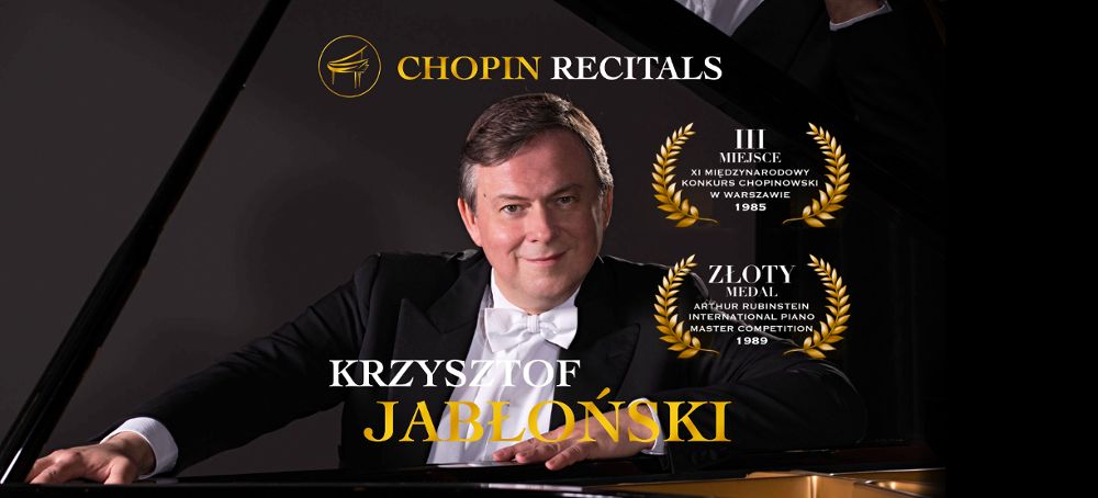 Zapraszamy na wyjątkowy koncert wybitnego polskiego pianisty Krzysztofa Jabłońskiego, zdobywcy III miejsca na XI Międzynarodowym Konkursie Chopinowskim w Warszawie oraz Złotego Medalu na Międzynarodowym Konkursie Pianistycznym im. Artura Rubinsteina. W programie wieczoru usłyszymy najbardziej znane arcydzieła Fryderyka Chopina.