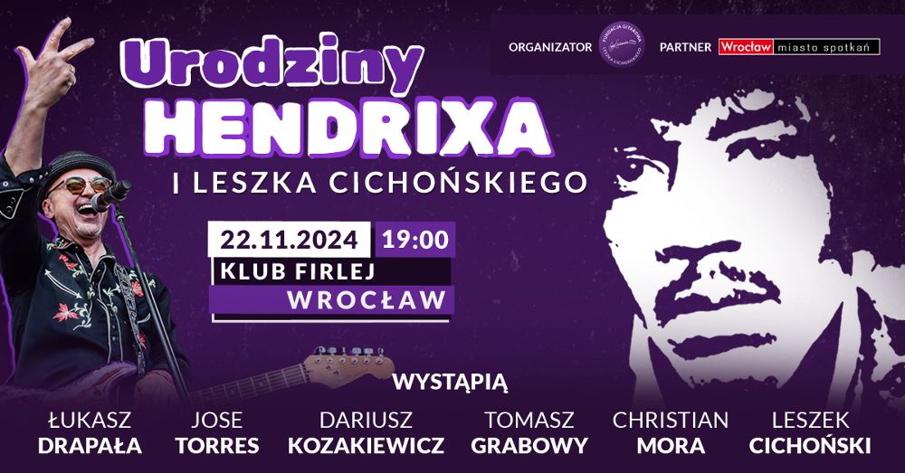 W piątek, 22 listopada, we wrocławskim klubie "Firlej" odbędzie się specjalny koncert - połączone urodziny Jimiego Hendrixa i Leszka Cichońskiego. Cichoński co roku dziękuje Hendrixowi za inspirację zbierając tysiące gitarzystów na wrocławskim Rynku i wykonując razem rekordowe „Hey Joe”.