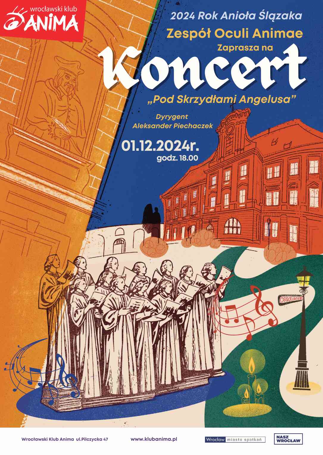 1 grudnia 2024, o godzinie 18.00, z okazji roku Anioła Ślązaka, Wrocławski Klub ANIMA, zaprasza na koncert chóru Oculi Animae „Pod Skrzydłami Angelusa”