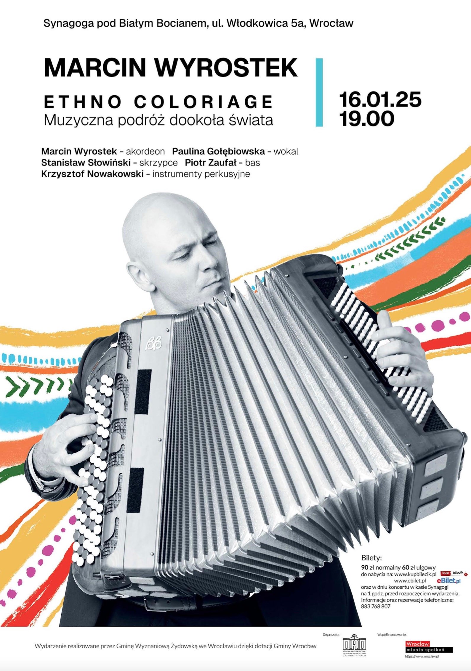 16 stycznia o godz. 19:00 w przepięknych wnętrzach Synagogi pod Białym Bocianem we Wrocławiu odbędzie się koncert jednego z najwybitniejszych polskich akordeonistów, zwycięzcy drugiej edycji programu „Mam Talent“ – Marcina Wyrostka.