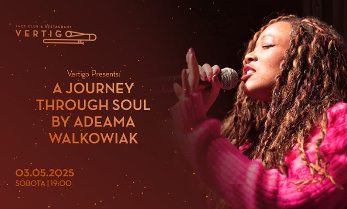 Zapraszamy na koncert, podczas którego zagłębicie się w dźwięki muzyki soulowej. Przez te podróż przeprowadzi Was Adeama Walkowiak, wspaniała wokalistka, którą możecie kojarzyć ze sceny Vertigo.