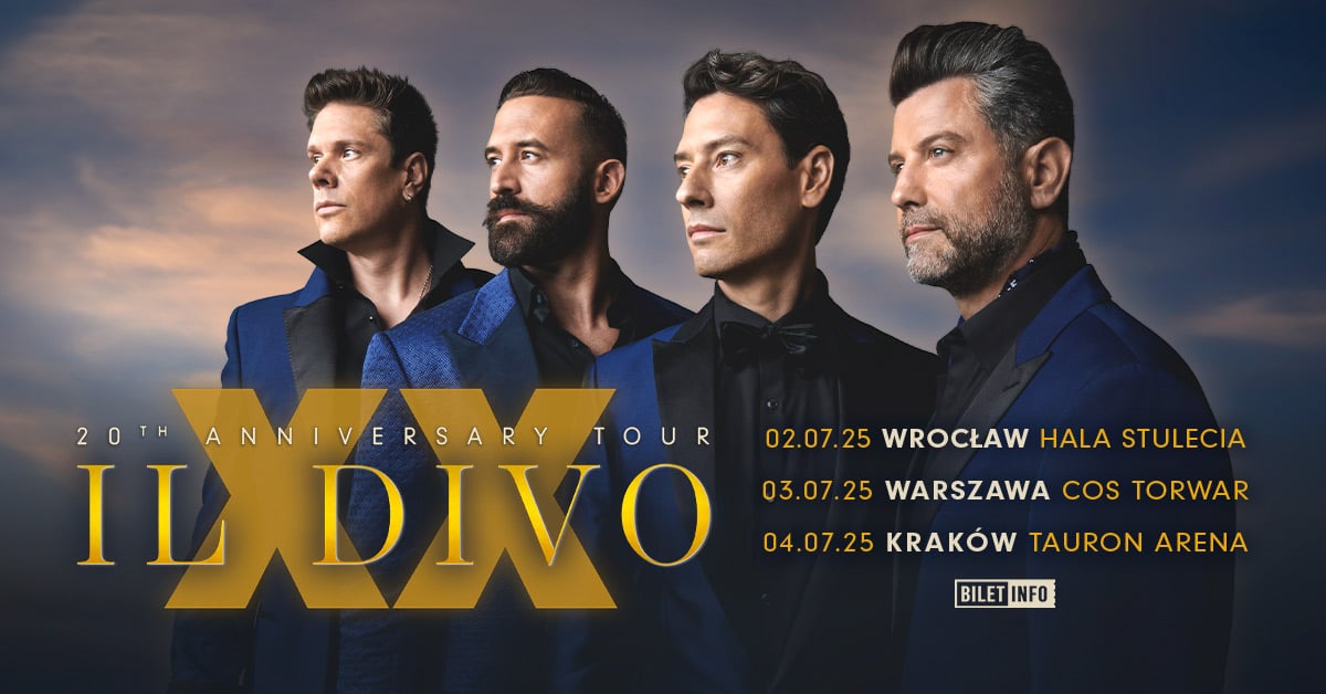 IL DIVO, międzynarodowy fenomen muzyczny, ponownie wystąpi w Polsce! W lipcu 2025 roku legendarna grupa wokalna, która zrewolucjonizowała muzykę klasyczną, odwiedzi trzy wyjątkowe miasta: Wrocław, Warszawę i Kraków. To jedyna okazja, by na żywo doświadczyć magii ich hipnotyzujących głosów, wirtuozerii operowej oraz niezapomnianych aranżacji.