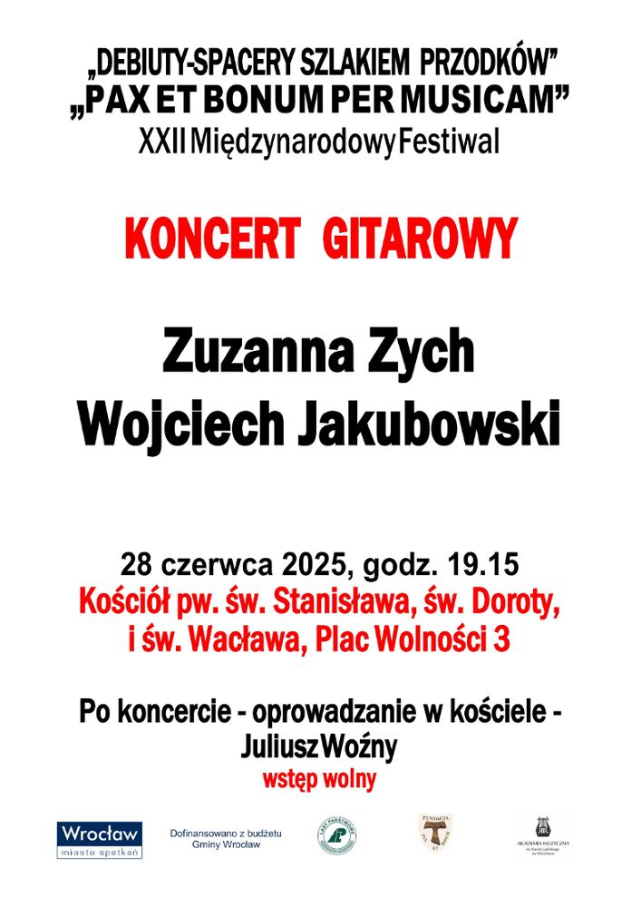 Fundacja PAX ET BONUM i parafia pw. św. Doroty zaprasza na XXII edycję Muzycznych Spotkań Kultur Międzynarodowego Festiwalu Debiuty – Spacery Szlakiem Przodków „Pax et bonum per musicam” 2025.
