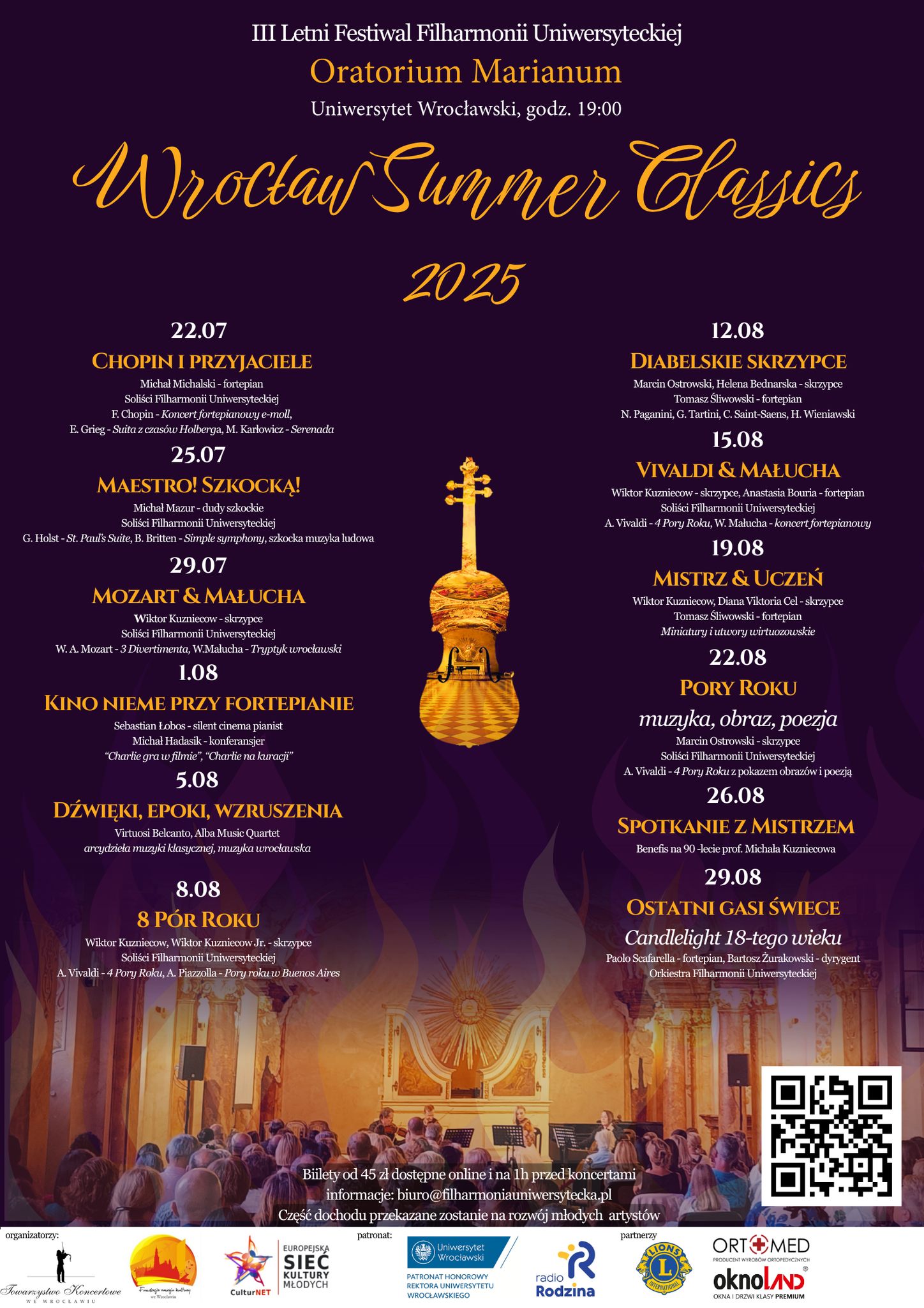 W dniach 22 lipca do 29 sierpnia 2025 odbędzie się w Oratorium Marianum we Wrocławiu letni festiwal muzyki klasycznej. Już po raz trzeci zagrają instrumentaliści Filharmonii Uniwersyteckiej i zaproszeni goście. II edycja cieszyła się zainteresowaniem Wrocławian oraz turystów przebywających we Wrocławiu w tych dniach.