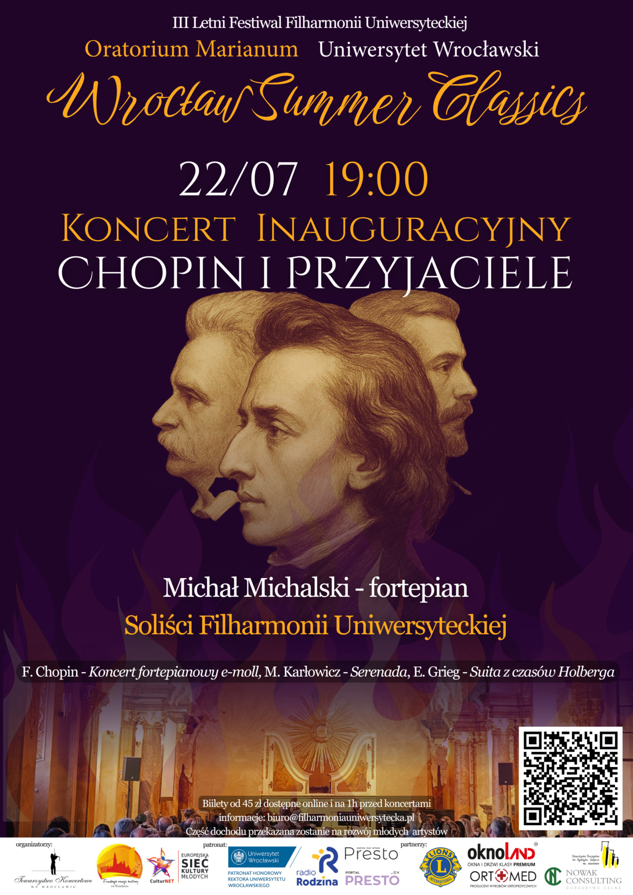 Na inaugurację III edycji festiwalu zabrzmi ikoniczny Koncert e-moll Fryderyka Chopina w interpretacji znakomitego wrocławskiego pianisty – Michała Michalskiego.