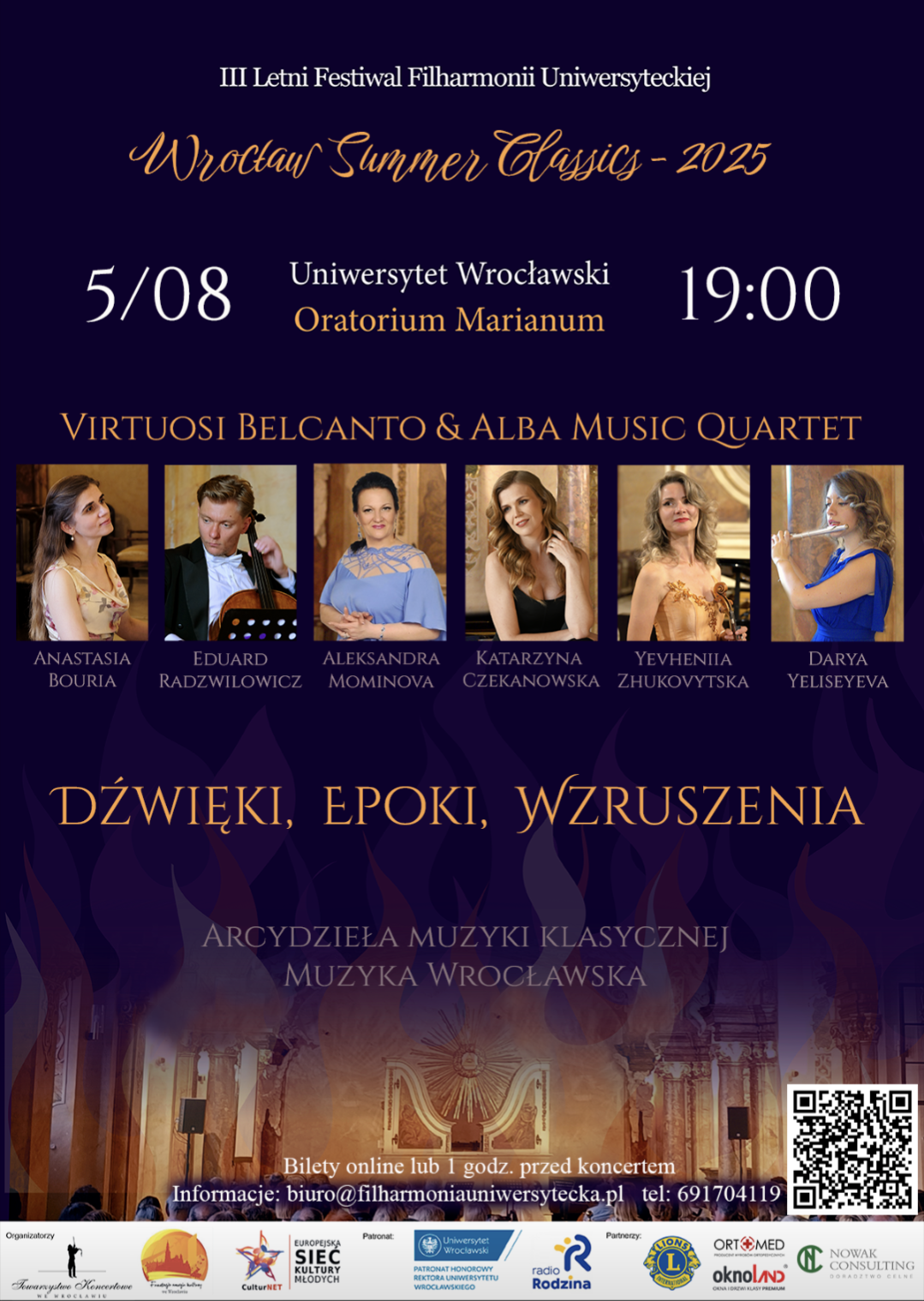 W zabytkowej sali Oratorium Marianum zabrzmią arcydzieła operowej i instrumentalnej klasyki, które poruszają serca od wieków. Ulubieni artyści festiwalu Wrocław Summer Classic, soliści Opery Dolnośląskiej wystąpią z nowym programem.