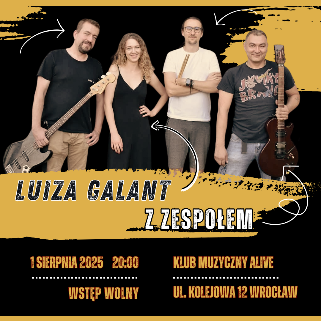 Autorski koncert wrocławskiego zespołu grającego pop-rocka. Jeśli szukasz wieczoru pełnego emocji, świetnego brzmienia i prawdziwej scenicznej energii – nie może Cię zabraknąć! Zespół ma na koncie kilka koncertów i cztery opublikowane utwory. „Rzym” to mocna opowieść z porywającą dynamiką, „Rottweiler” jest pełen intensywnych emocji, „Dotyk” to ballada dla wrażliwych dusz, a „Zgaś wszystkie światła” to singiel wydany jeszcze przed powstaniem zespołu. Reszta utworów jest do usłyszenia tylko na żywo – nie przegap tej okazji!