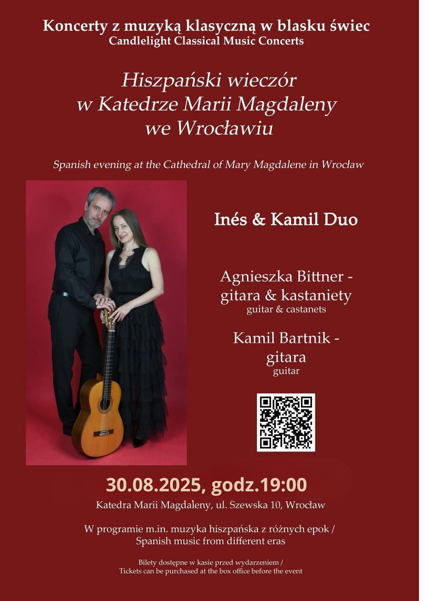 Zamknij wakacje z przytupem – dosłownie i w rytmie kastanietów! Zapraszamy na wyjątkowy koncert, który przeniesie nas w sam środek rozgrzanej słońcem Hiszpanii. W gotyckich murach Katedry zabrzmi muzyka pełna pasji, ognia i południowego temperamentu.