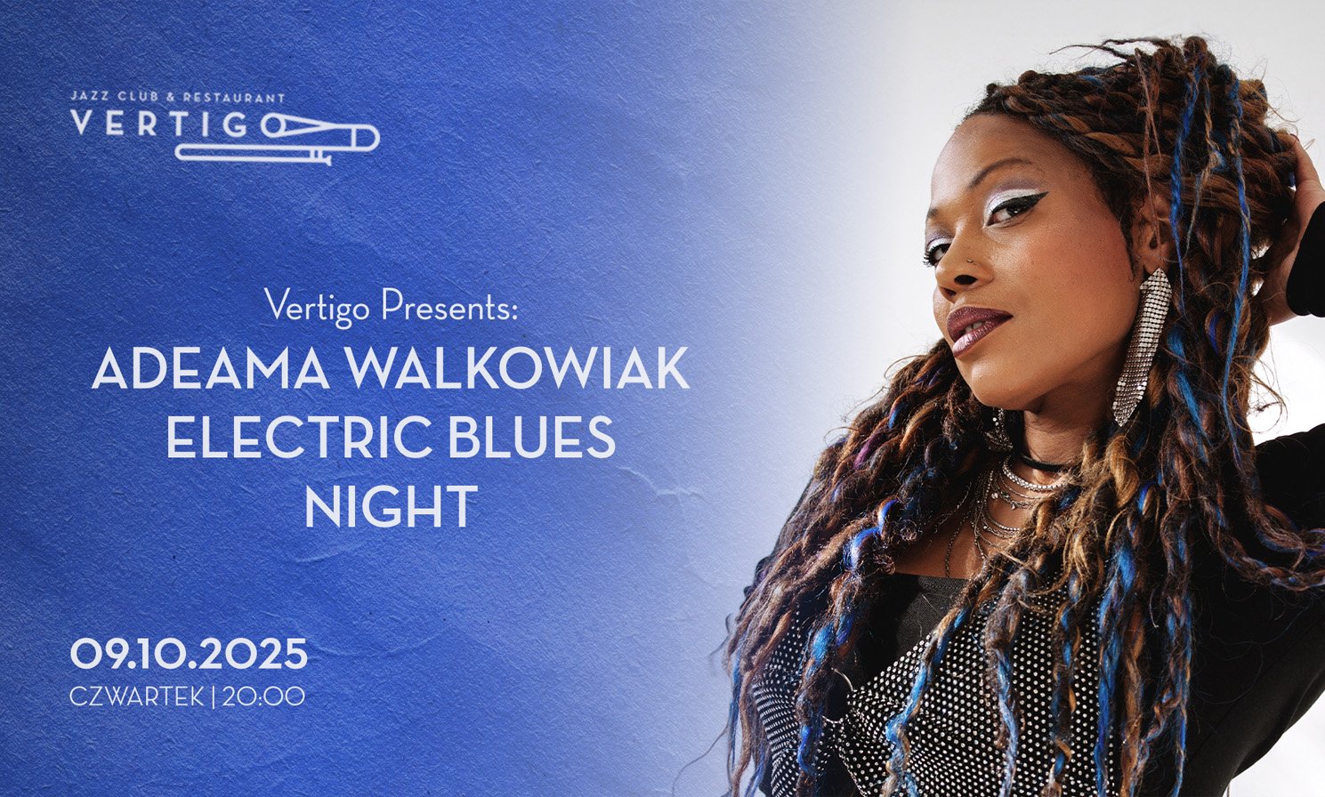 Zapraszamy na wyjątkowy bluesowy wieczór z Adeamą Walkowiak w klubie Vertigo! To koncert pełen klimatu rodem z ulic Chicago, gdzie blues tętni w każdym dźwięku.