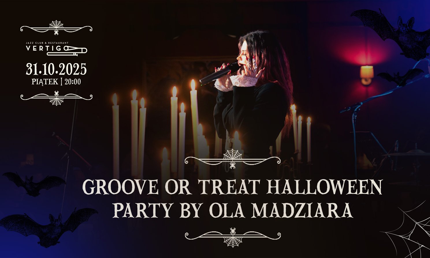 Zapraszamy na wyjątkowy, halloweenowy koncert, który poprowadzi zjawiskowa Ola Madziara. Czeka Was wieczór pełen gorącego soulu i funku, przeplatanego dreszczykiem strachu i odrobiną uwodzicielskiego klimatu. Muzyka porwie do tańca, a sceniczne emocje sprawią, że poczujecie magię tej wyjątkowej nocy. Na barze pojawią się specjalne, mroczne koktajle inspirowane halloweenowymi smakami, a kuchnia Vertigo przygotuje dla Was przerażająco pyszne przysmaki. To idealne połączenie muzyki, zabawy i kulinarnych atrakcji w niepowtarzalnej atmosferze. Przyjdź i daj się uwieść – będzie strasznie dobrze!