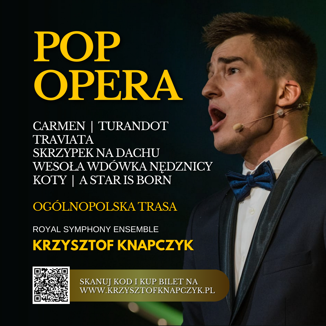 To koncert, który łączy klasykę z popem i musicalem, wzbogacony efektami świetlnymi, tańcem i wizualną oprawą przenoszącą widzów do świata operowych scen i teatralnej magii. Krzysztof Knapczyk – tenor, aktor, wokalista Artysta związany z Teatrem Muzycznym w Łodzi, członek projektów „Queen Symfonicznie”, „The Beatles Symfonicznie” i „A Tribute to Il Divo. The 3 Tenors”, z którymi występował m.in. w Grecji, Niemczech i USA. Uznawany za jednego z najzdolniejszych wokalistów młodego pokolenia, śpiewa w pięciu językach: polskim, włoskim, francuskim, angielskim i rosyjskim. Od 2014 roku realizuje autorski projekt „Opera na ulicy”, z którym odwiedził m.in. Rzym, Amsterdam, Paryż, Nowy Jork i Berlin. Jego twórczość to połączenie klasyki, musicalu i popu – nowoczesne podejście do opery, które przybliża ją współczesnej publiczności.