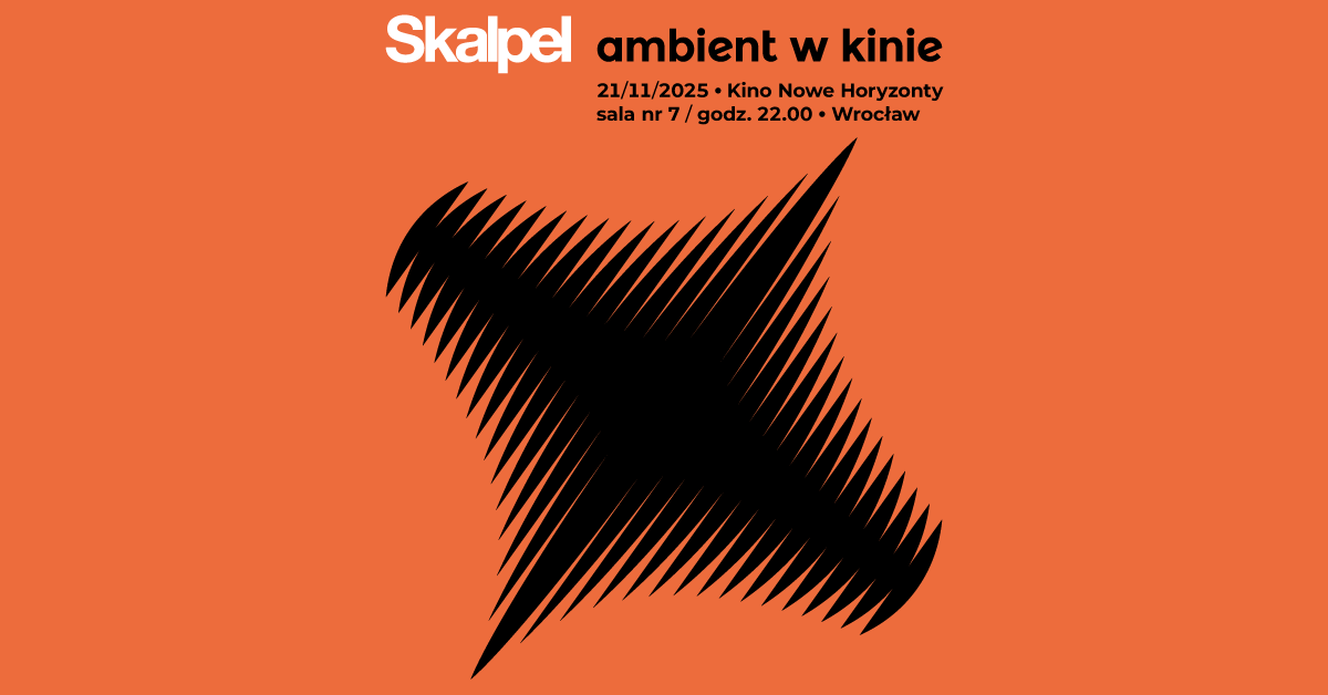 Zapraszamy na wyjątkowe wydarzenie – Skalpel Ambient w kinie – już 21 listopada (piątek) w Kinie Nowe Horyzonty we Wrocławiu. Tego wieczoru w sali nr 7 odbędzie się specjalny, premierowy koncert audio-wizualny wrocławskiego duetu Skalpel.