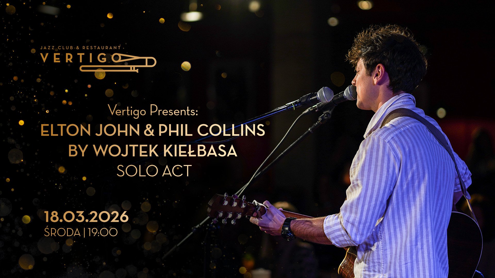 Zapraszamy na wyjątkowy wieczór „Vertigo Presents: Elton John & Phil Collins by Wojtek Kiełbasa – Solo Act”, podczas którego usłyszą Państwo największe przeboje dwóch legend muzyki światowej.