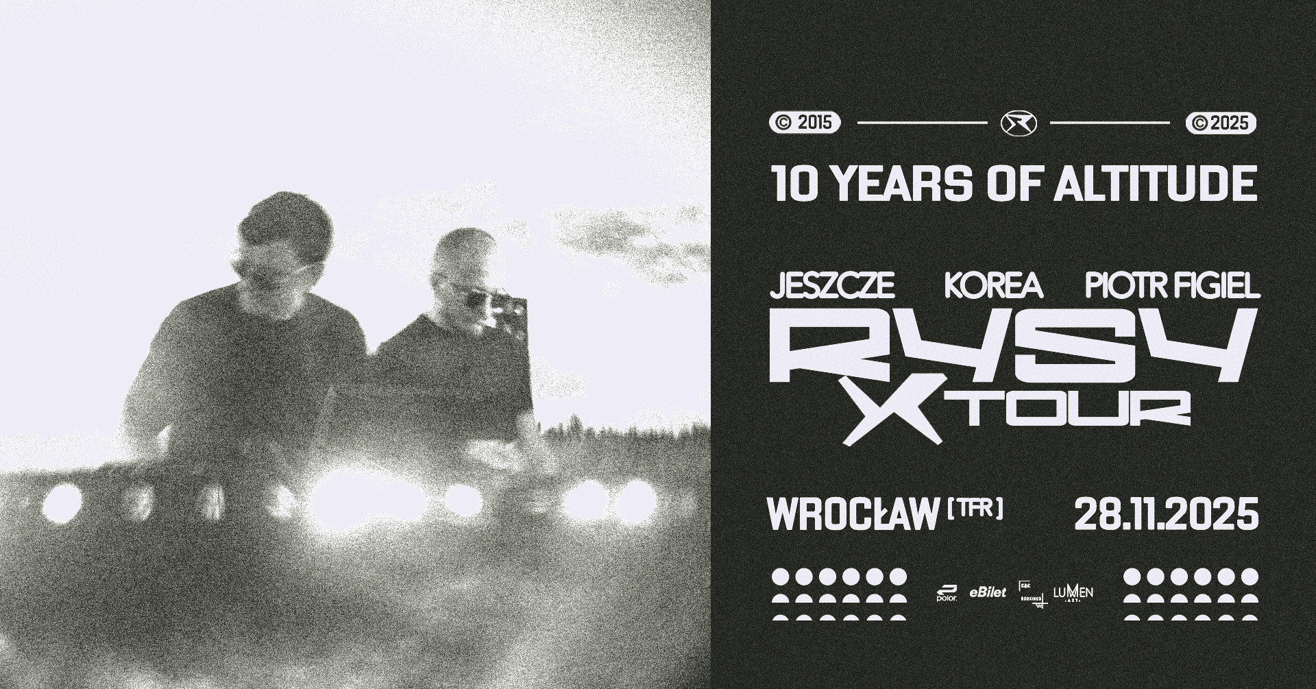 Przez góry i lasy, duszne kluby i przepełnione festiwale — tak wygląda trwająca już dekadę podróż warszawskiego duetu. Grając bangery i nieopublikowane jeszcze tracki, Rysy staną na deskach 10 scen, prowadząc publiczność przez swoją dyskografię. To opowieść o przenikających zmysły dźwiękach syntezatorów, dialogu między bassem a mocną stopą, a przede wszystkim o ponadczasowym brzmieniu polskiej muzyki elektronicznej.