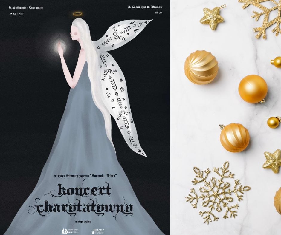 Klub Muzyki i Literatury we Wrocławiu oraz Hospicjum „Formuła Dobra” zapraszają na wyjątkowy koncert charytatywny, który wprowadzi Was w magiczny, świąteczny nastrój i pozwoli wspólnie pomagać potrzebującym.