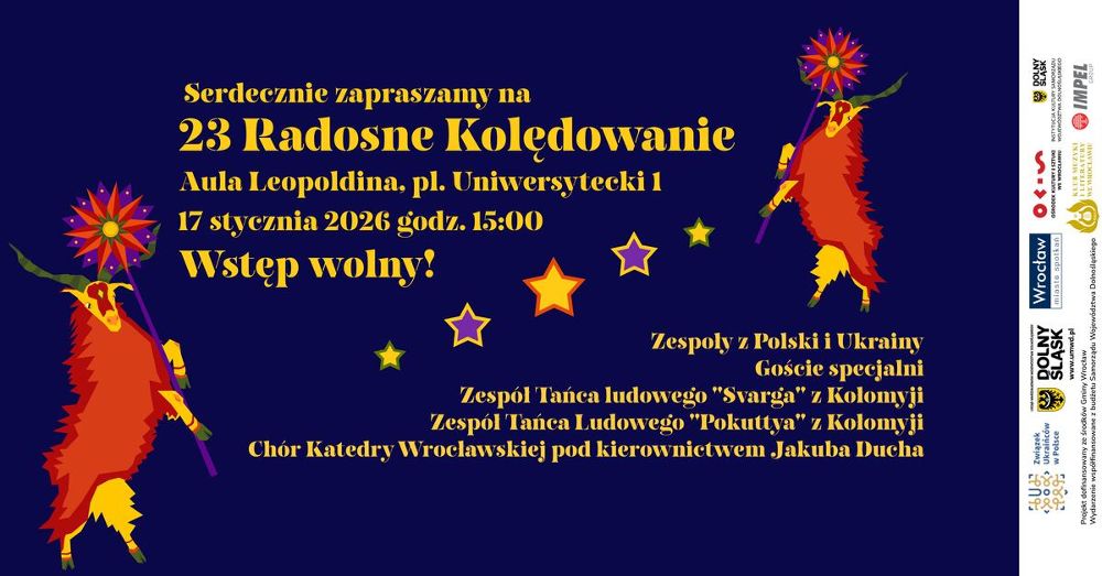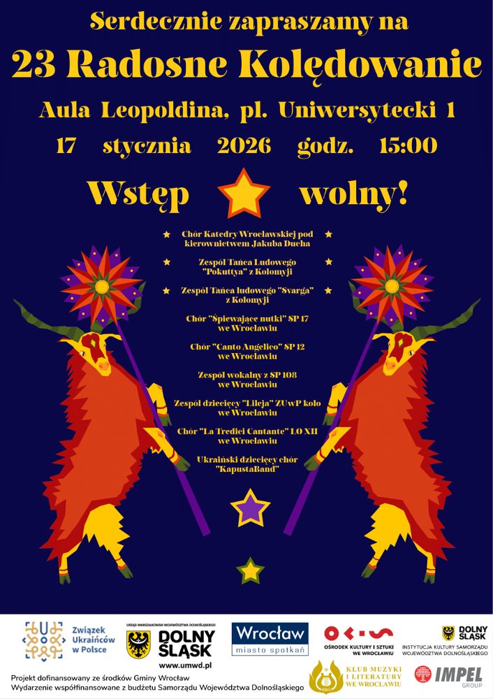 W sobotę, 17 stycznia 2026, polskie i ukraińskie zespoły spotkają się na Radosnym Kolędowaniu, w ramach Wrocławskich Dni Jedności Chrześcijan. W Auli Leopoldyńskiej Uniwersytetu Wrocławskiego zabrzmią bożonarodzeniowe pieśni z obu krajów.