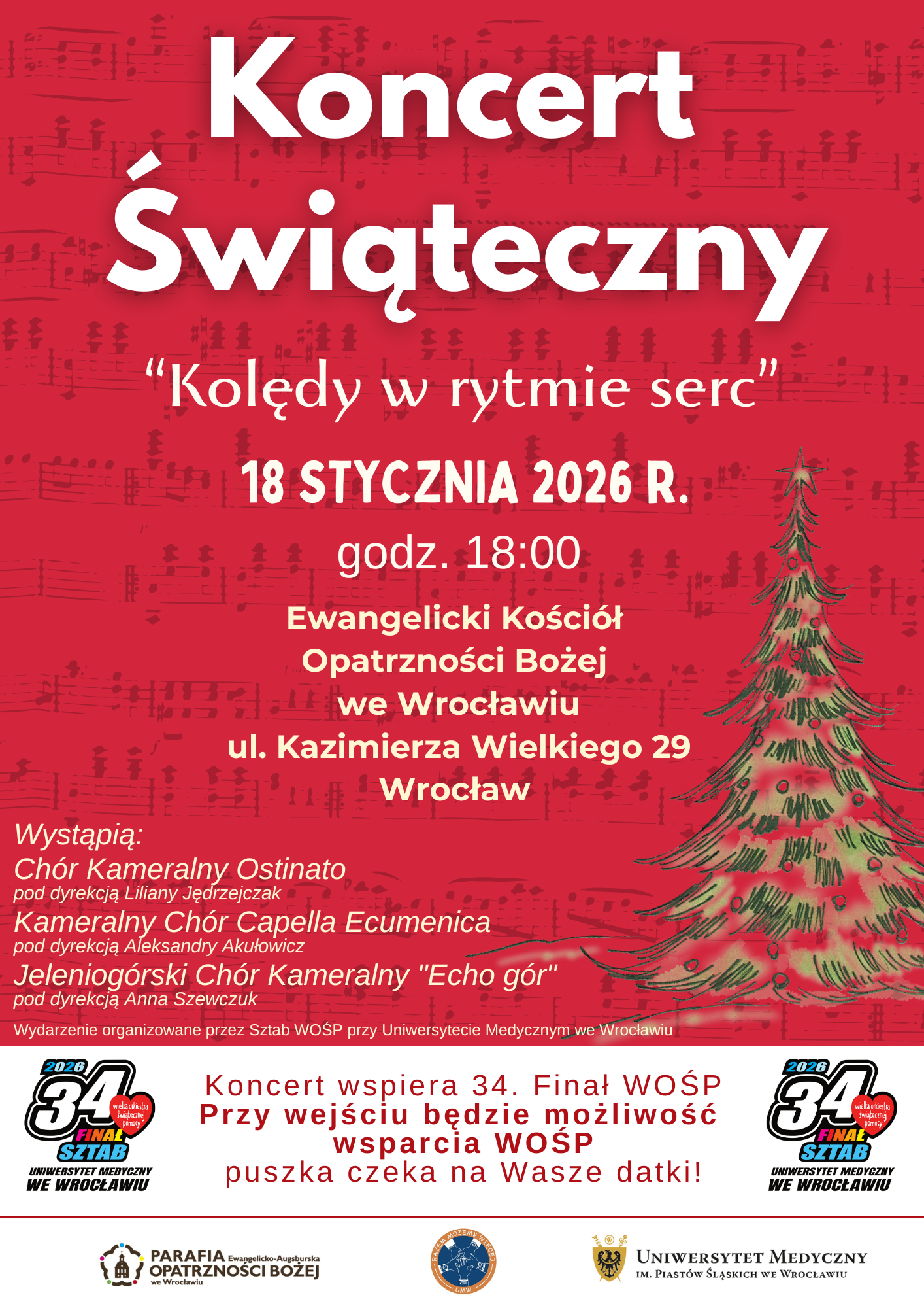 Zapraszamy serdecznie na koncert świąteczny „Kolędy w rytmie serc”, który odbędzie się w Ewangelickim Kościele Opatrzności Bożej we Wrocławiu, ul. Kazimierza Wielkiego 29.