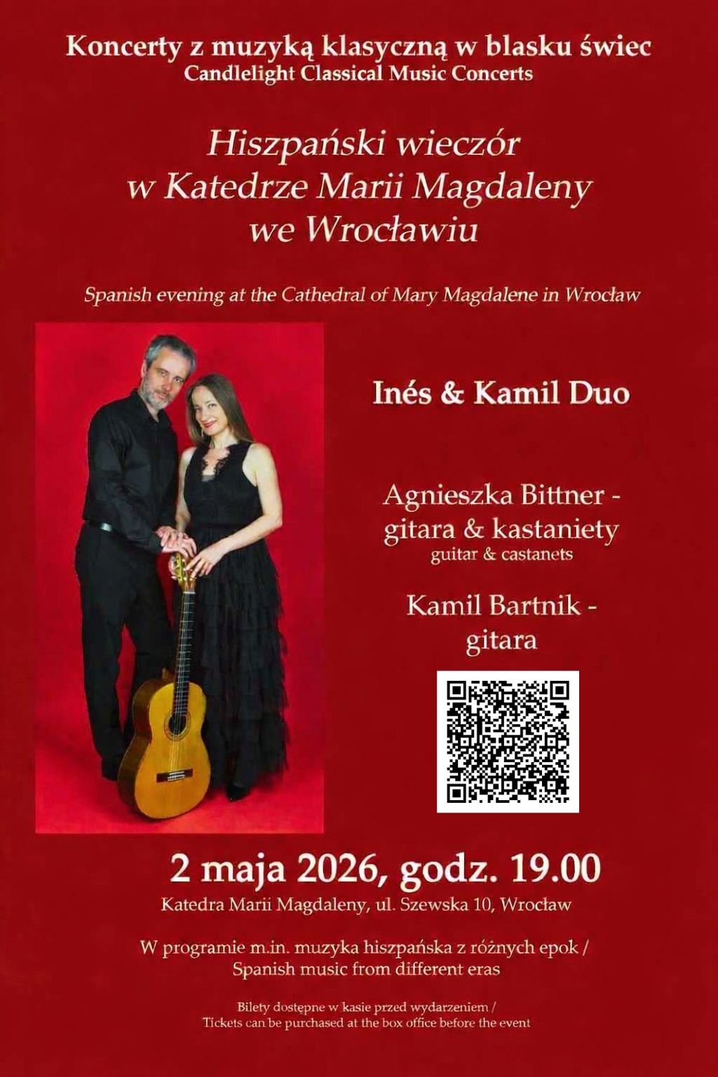 Wspaniała akustyka miejsca sprawi, że każdy dźwięk i każdy ruch wybrzmią wyjątkowo czysto, przenosząc publiczność w świat hiszpańskiego temperamentu.