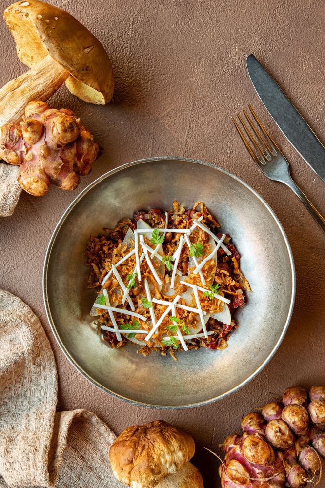 Tatar z gęsiny gruszka/ słonecznik/ grzyby leśne