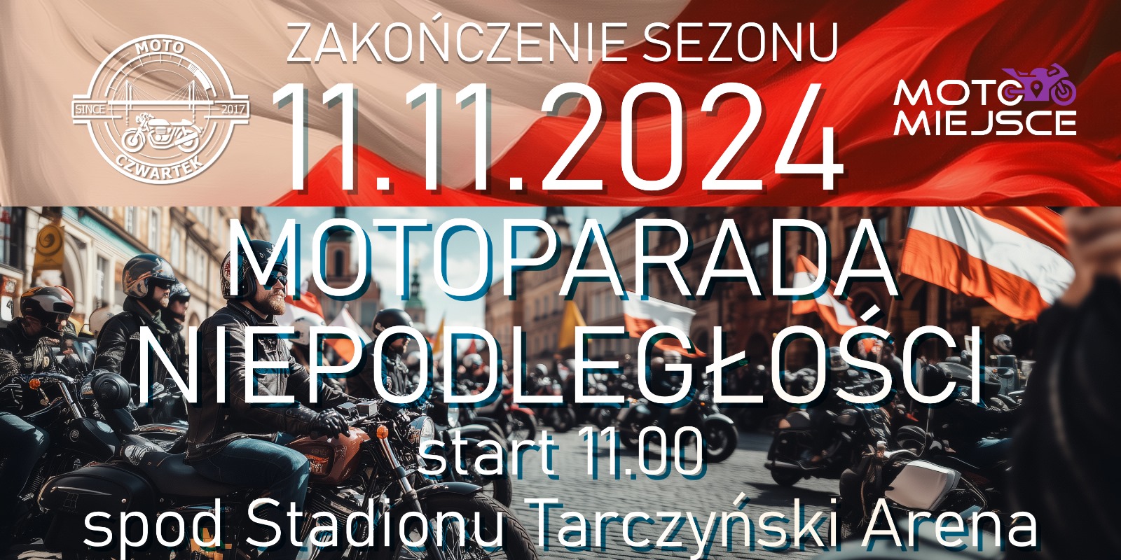 W dniu Święta Niepodległości motocykliści zbiorą się na parkingu Tarczyński Areny, by wyruszyć w trasę Motoparady. Pasjonaci jednośladów uczczą w ten sposób kolejną rocznicę odzyskania przez Polskę niepodległości. Zbiórkę zaplanowano na 11:00 na terenie parkingu za bramą B, start przejazdu na 11:30. Parada zakończy się przy ulicy Kościerzyńskiej 9 na terenie "Centrum Technik Motocyklowych MOTOMIEJSCE", gdzie odbędzie się impreza zakończenia sezonu.
