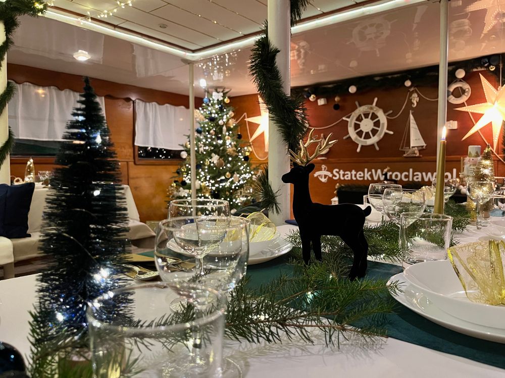 Jak co roku statek jest pięknie przystrojony świątecznymi ozdobami. Jednostka jest ogrzewana, a na pokładzie znajduje się bar oraz toalety. Wieczorne rejsy uświetni wyjątkowa świąteczna iluminacja statku. Serdecznie zapraszamy do udziału.