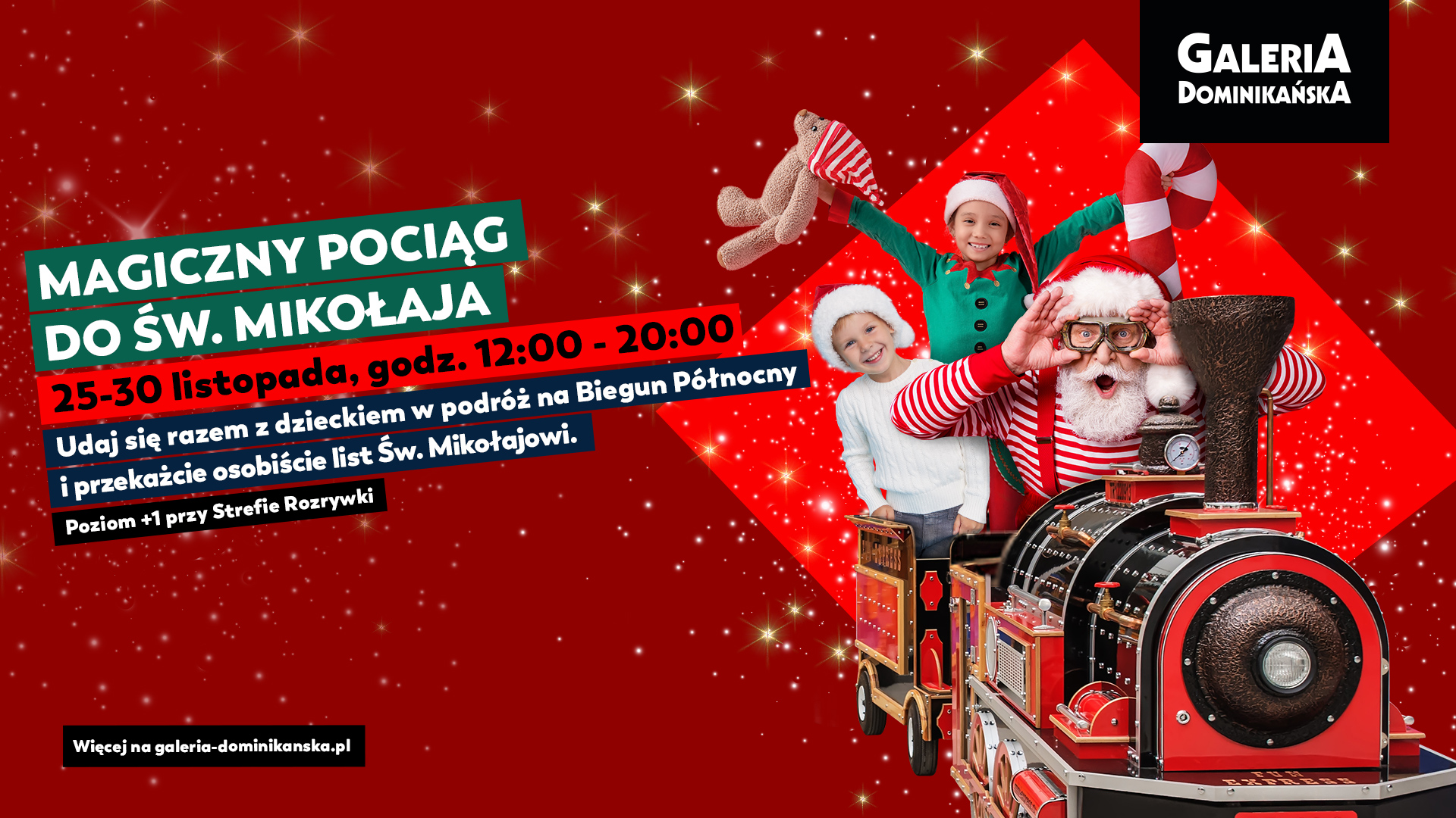 W Galerii Dominikańskiej zapanuje prawdziwa świąteczna magia! Zabierzesz swoje dziecko na niezapomnianą podróż do Laponii, gdzie w bajkowej scenerii, na końcu torów, będzie czekać sam Święty Mikołaj!
