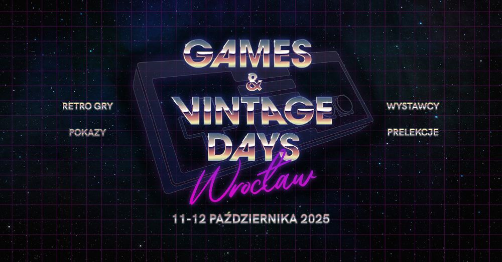 Twórcy fanowskiego Muzeum Gry i Komputery Minionej Ery oraz inicjatywy RetroGralnia (Fundacja Gry i Komputery Minionej Ery) zapraszają na Games & Vintage Days Wrocław – wydarzenie poświęcone szeroko rozumianemu retrogamingowi – czyli grom, komputerom, konsolom z lat 80. i 90. oraz zjawisku vintage powiązanemu z nimi, a także elektroniką, audio i video.