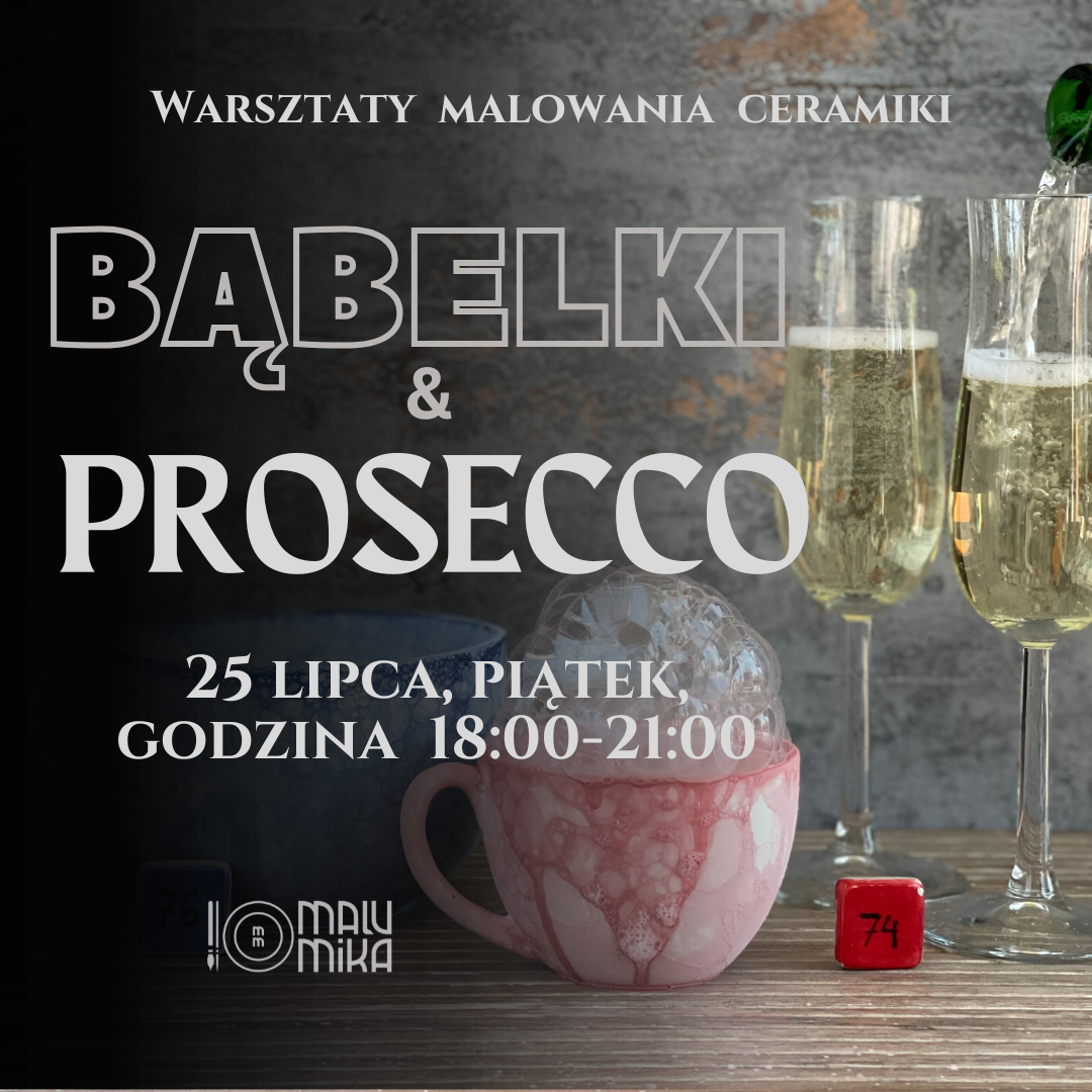 Zapraszamy na wyjątkowy wieczór pełen kreatywności, bąbelków i Prosecco! W piątek, 25 lipca, odbędą się warsztaty malowania ceramiki dla dorosłych, podczas których połączymy artystyczną zabawę z eleganckim klimatem i pysznymi przekąskami. Podczas warsztatów poznasz różne ciekawe techniki malowania ceramiki oraz popularną technikę bąbelkową, która pozwala uzyskać wyjątkowe, organiczne wzory – idealne jako tło lub główny motyw.