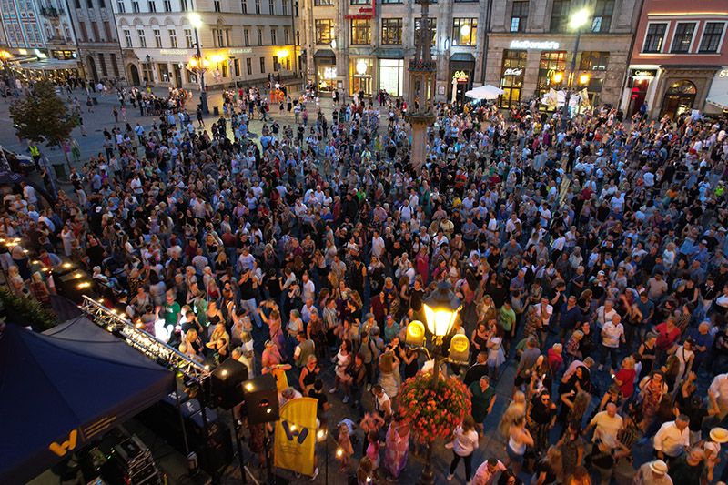 Jako taneczną rozgrzewkę o 18.00 DJ Marvill zaprasza na taneczne zabawy integrujące przy muzyce z całego świata. Wrocławskie potańcówki to wydarzenia bezpłatne i otwarte dla wszystkich – niezależnie od wieku czy umiejętności tanecznych. Klimat tych zabaw w centrum miasta jest niepowtarzalny, warto się wybrać, żeby przekonać się o tym osobiście.