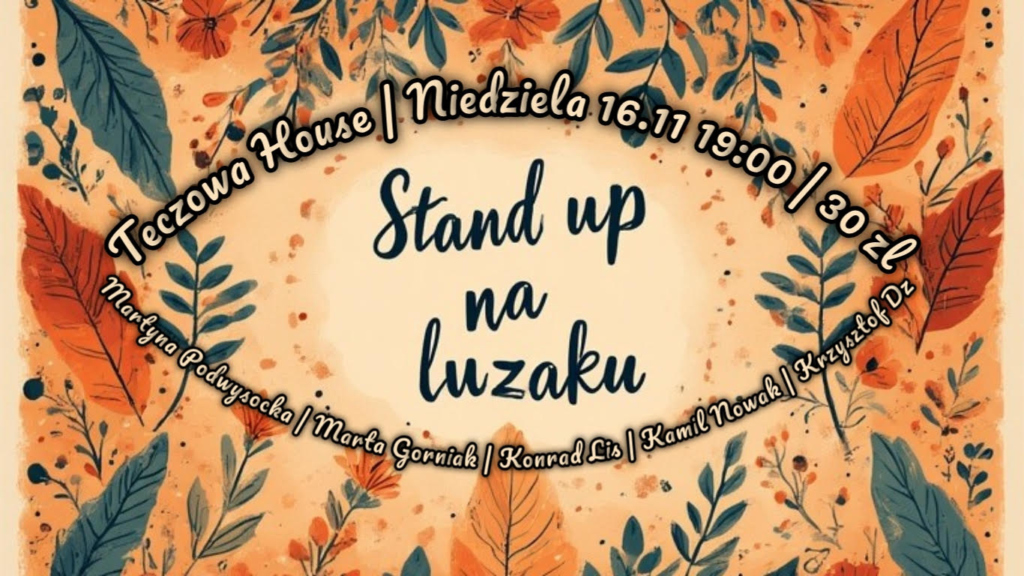 Zapraszamy na Stand-up na luzaku Vol. 2 – wyjątkowy wieczór w klimacie świątecznym, pełen żartów, improwizacji i interakcji z publicznością. To Wy decydujecie o tempie i nastroju – dajcie się ponieść luźnej atmosferze i dzielcie się tym, co Was bawi!