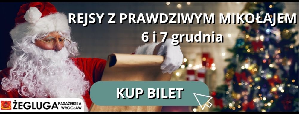 Rejsy z Prawdziwym Mikołajem na statku Wratislavia! 6–7 grudnia zapraszamy całe rodziny na niezwykłe, świąteczne rejsy pełne magii, radości i zimowego blasku! Start z Bulwaru Dunikowskiego – Przystani Wratislavia, czas trwania rejsu to 60 min.