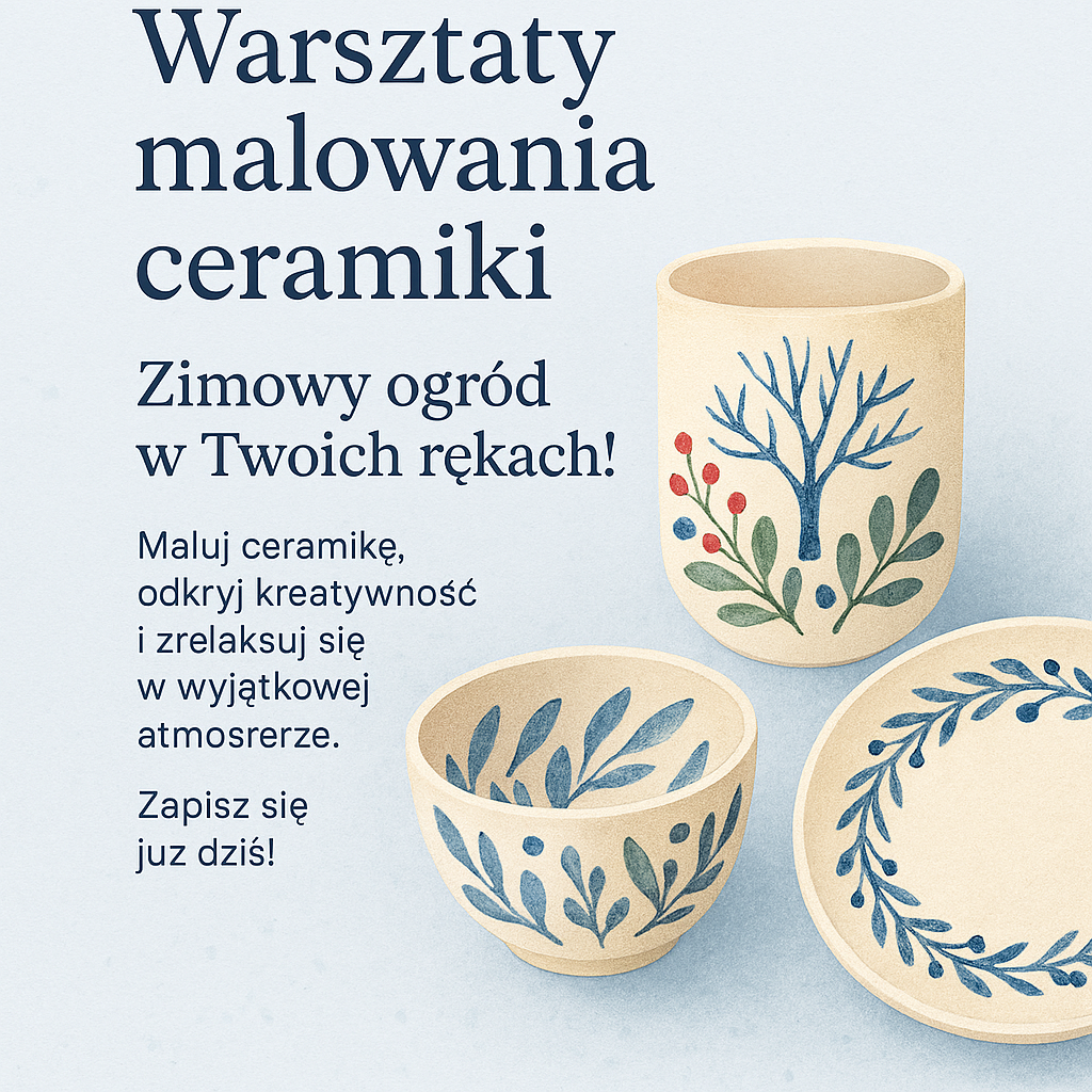 Połączenie twórczego relaksu z zimowym klimatem – tak można opisać nasze najnowsze warsztaty ceramiczne! Pod okiem lokalnej artystki krok po kroku stworzycie własne ceramiczne kompozycje inspirowane zimowym ogrodem.