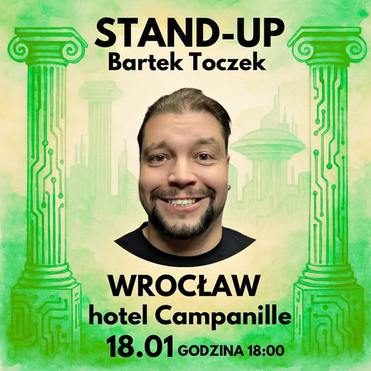 Zapraszamy na stand-upowy wieczór z Bartkiem Toczekiem, podczas którego wejdziesz w hipnotyczny stan dobrego humoru.
